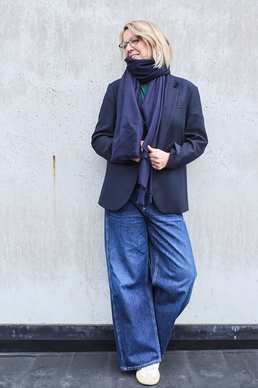 Blazer van het Italiaanse merk Pomandère. 34% polyester, 33% viscose, 32% wol, 1% elastaan. Kleur: Navy