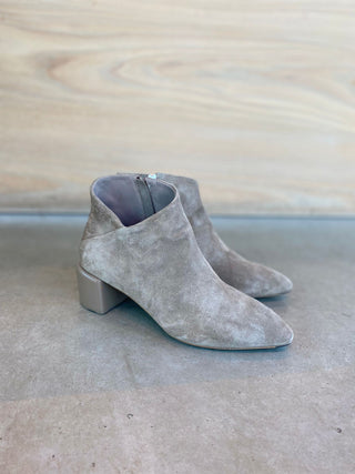 Laarsje van het Italiaanse merk Officine Creative. 100% leder. Kleur: Cashmere Quarzo. Enkellaarsje in zacht suède met puntige neus en volhouten hak.