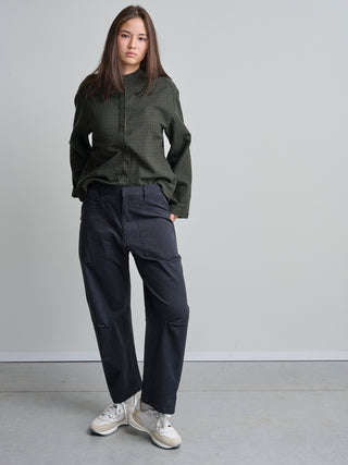 Broek van het Belgische merk Mel. 100% katoen. Kleur: Coal. Barrel fit broek met plooien aan de knie.