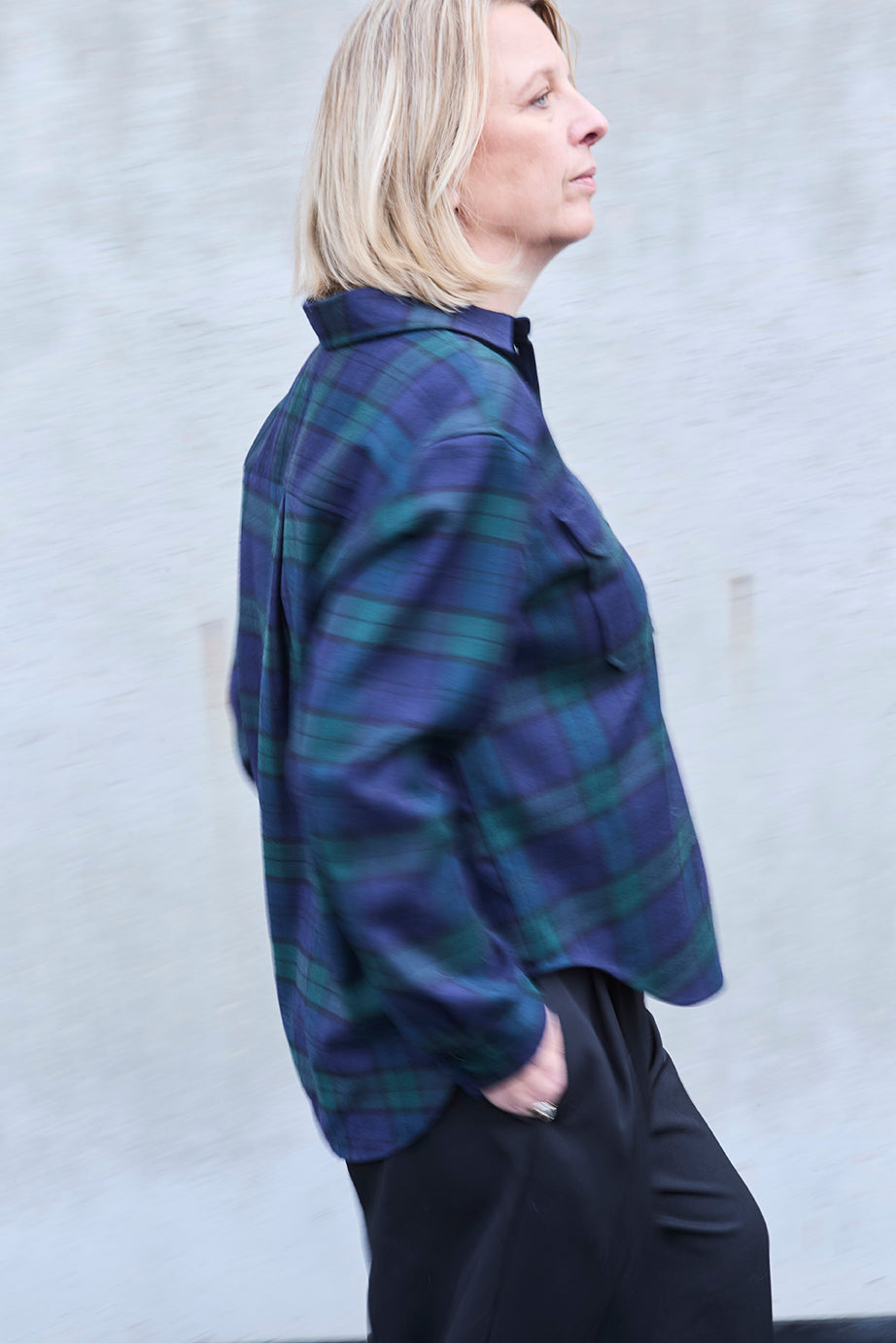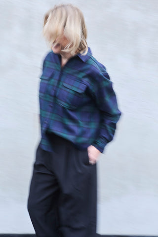 Hemd van het Italiaanse merk Pomandère. 90% scheerwol 7% polyamide 3% elastaan. Kleur: Bottle Green. Hemd van wollen tartanflanel, met klepzakken.