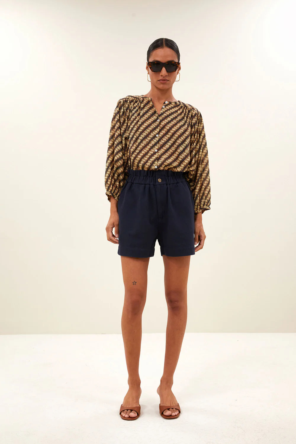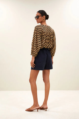 Short van het Nederlandse merk By-bar. 100% katoen. Kleur: Captain Blue. casual short met een hoge taille en een comfortabele, losvallende pasvorm.