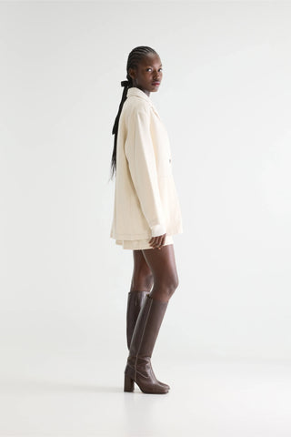 Blazer van het Belgische merk Bellerose. 100% katoen. Kleur: Natural. Crèmekleurige blazer van zacht katoen met een boxy snit, brede revers, dubbele knoopsluiting en grote opgestikte zakken.