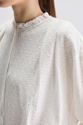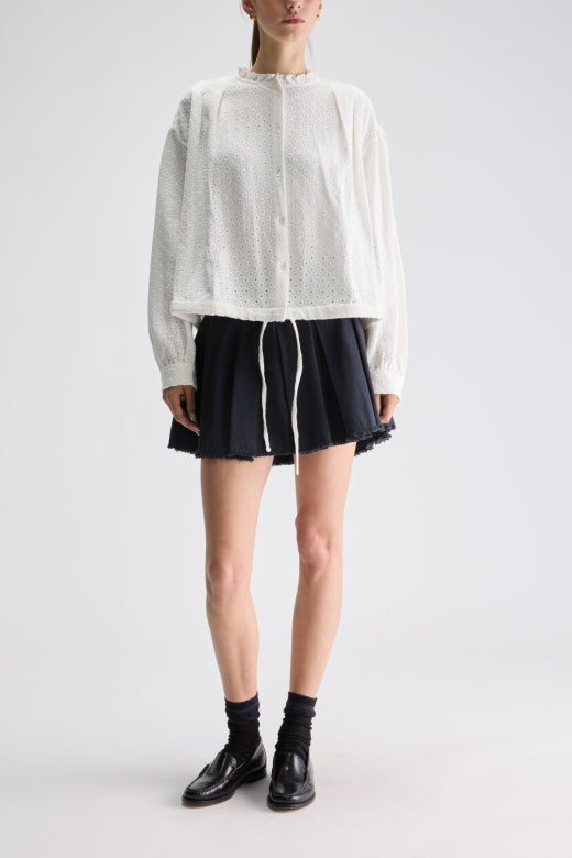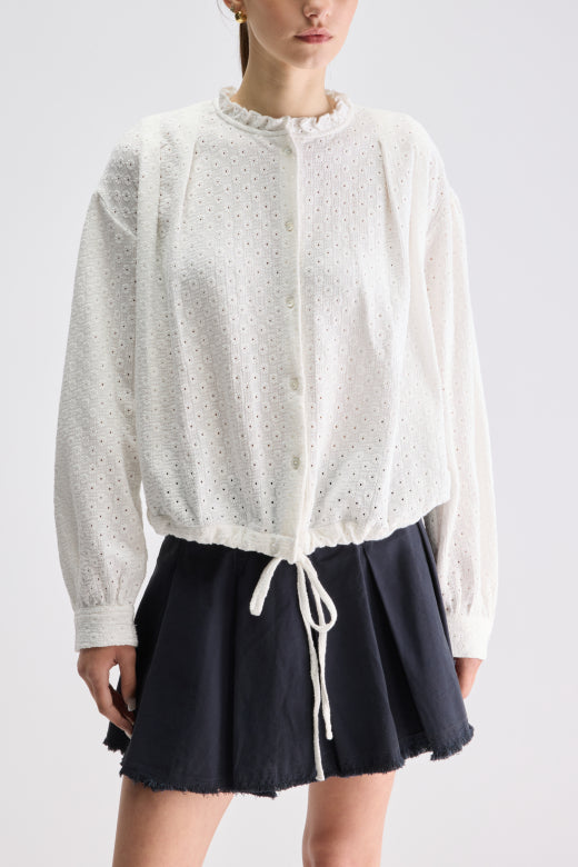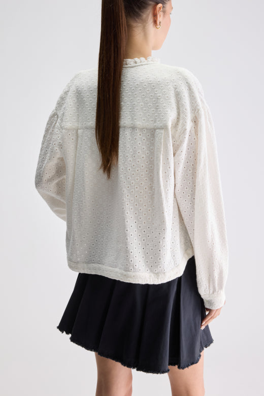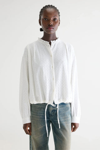 Bloes van het Belgische merk Bellerose. 100% katoen. Kleur: Natural. Bloes in broderie Anglaise.