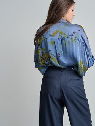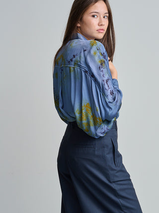 Bloes van het Belgische merk Nous. 100% viscose. Kleur: Crumble Slate. Oversized hemd in een vloeiende viscose.