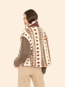 Bodywarmer van het Amerikaanse merk Xirena. 100% polyester. Kleur: Diamond Tribe. Bodywarmer met opstaande kraag.
