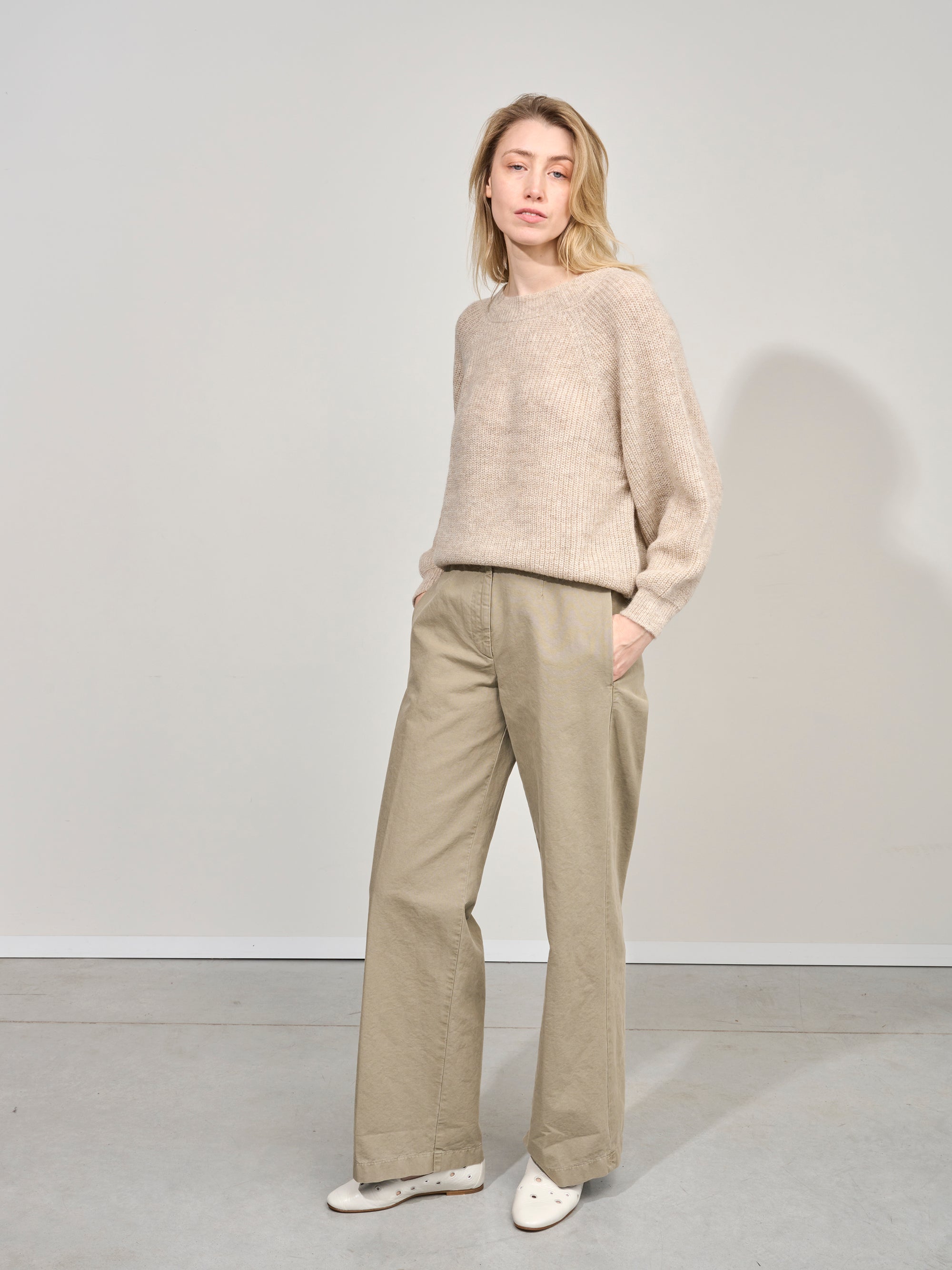 Broek van het Italiaanse merk Pomandère. 100% katoen. Kleur: 700. Iconische katoenen gabardine broek.