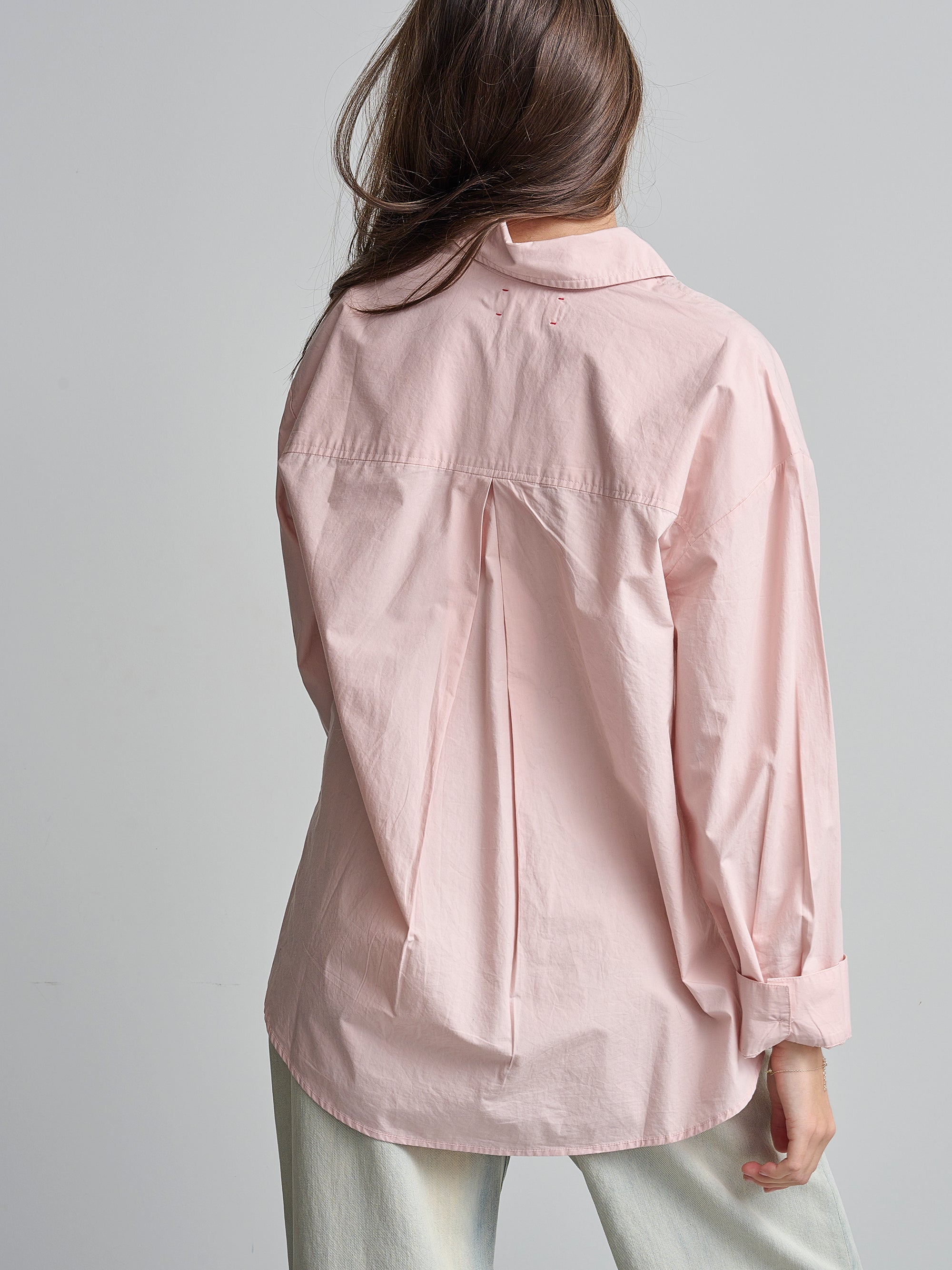 Hemd van het Amerikaanse merk Xirena. 100% katoen. Kleur: Powder Rose. Relaxte overhemd met knoopsluiting heeft een gestructureerde uitstraling en is voorzien van een hoog-laag zoom met zijsplitten en een rugpand met een omgekeerde plooi.