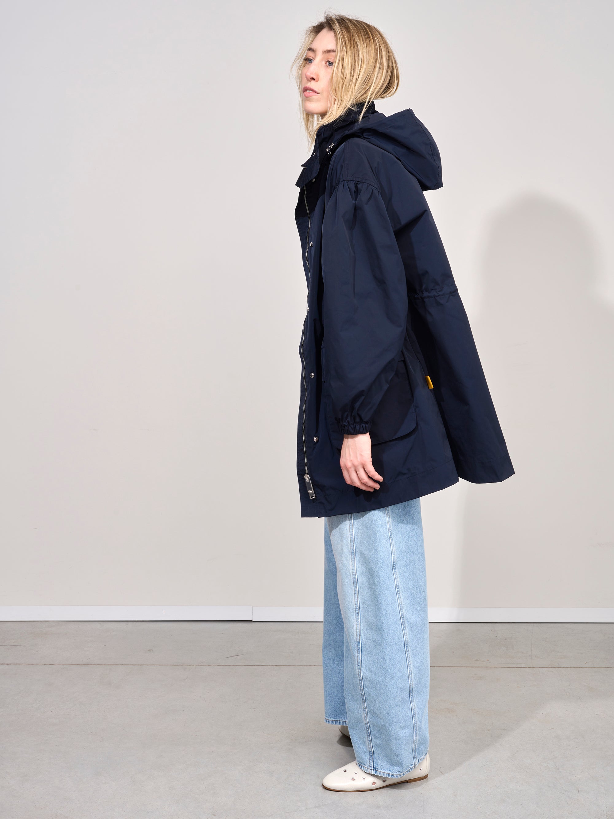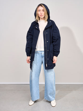 Jas van het Italiaanse merk OOF Wear. 100% polyester. Kleur: Total Eclipse. Halflange parka met kap.