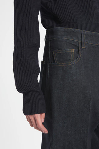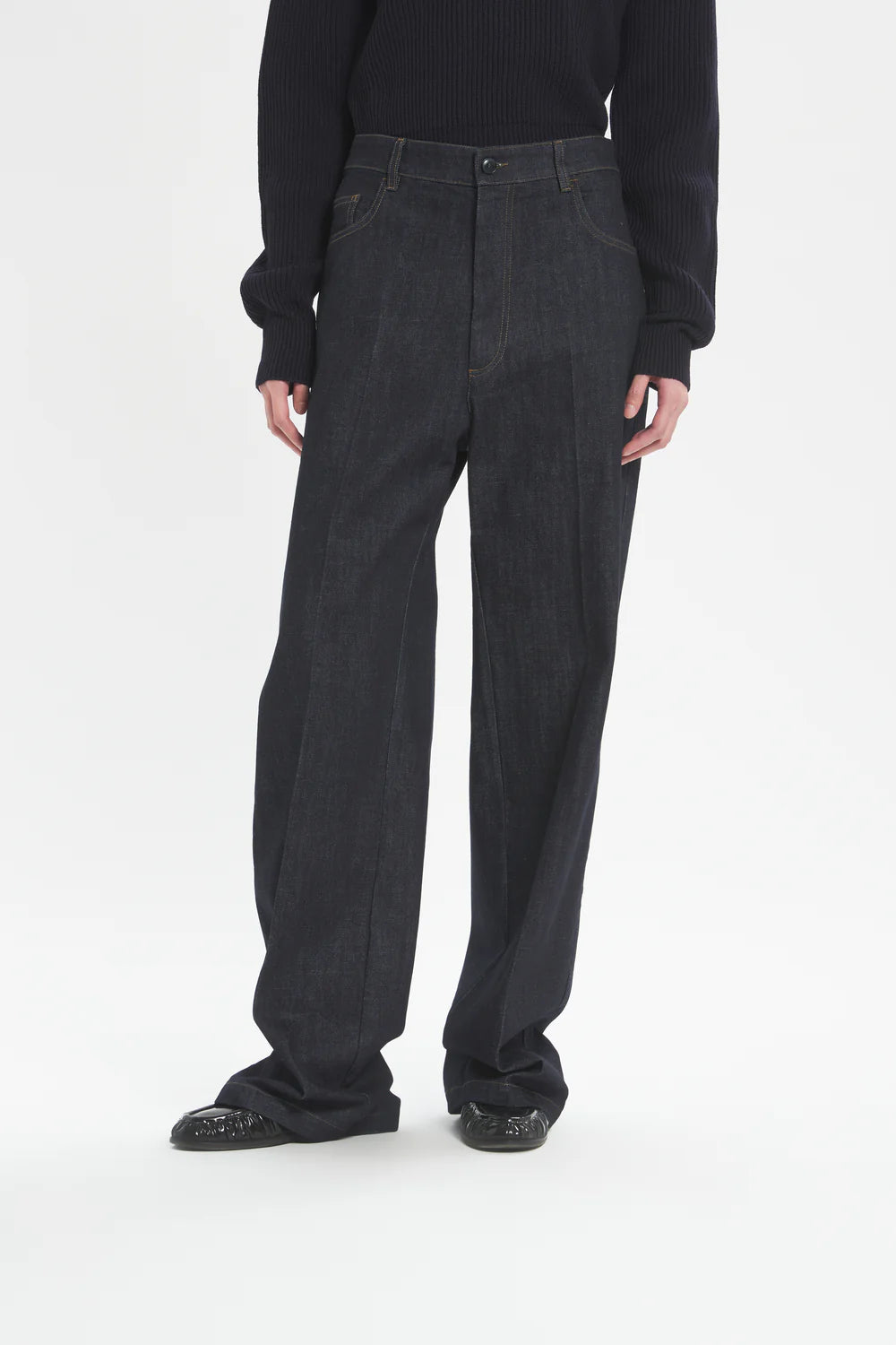 Jeans van het Italiaanse merk Barena Venezia. 99% katoen,1% elastaan. Kleur: Navy. 5-pocket jeans gemaakt van donker, gewassen katoenen denim en heeft een recht model, verrijkt met plooien aan de voor- en achterkant.