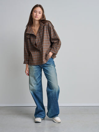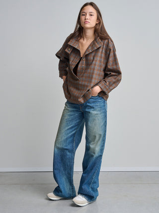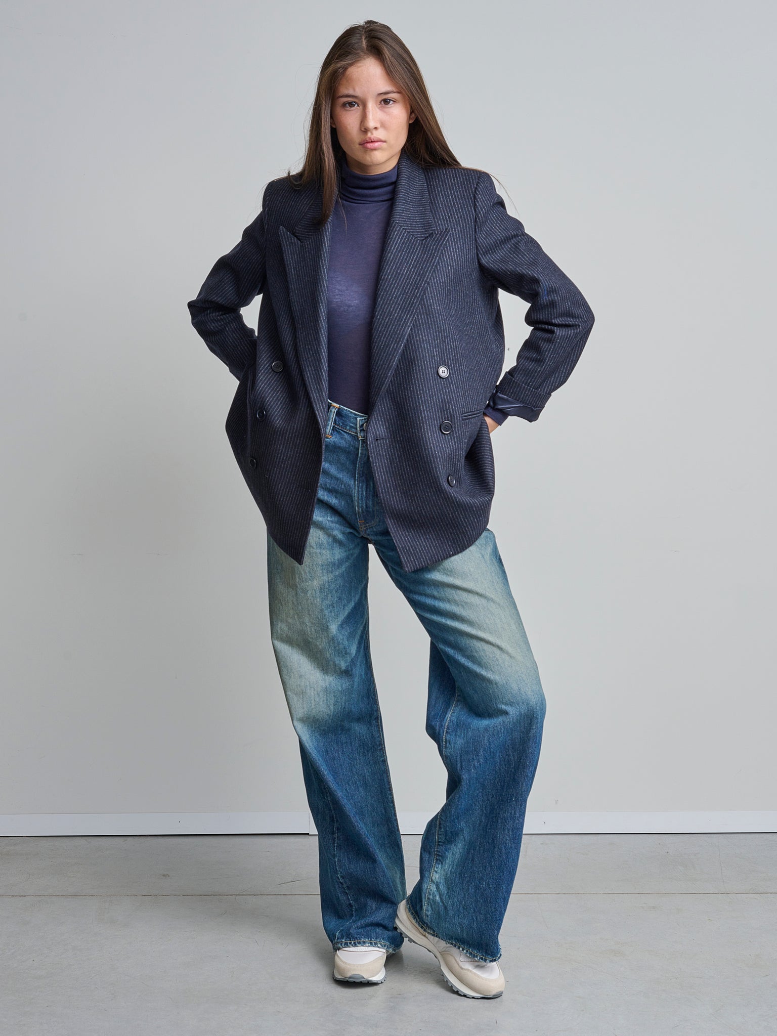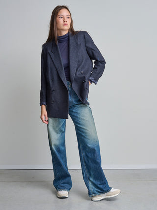 Jeans van het Amerikaanse merk Denimist. 100% katoen. Kleur: Esher Blue. Jeans met een mid-rise pasvorm en een ruime wijde pijp.