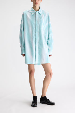 Jurk van het Belgische merk Bellerose. 100% katoen. Kleur: Stripe A. Wijde, korte hemdjurk.