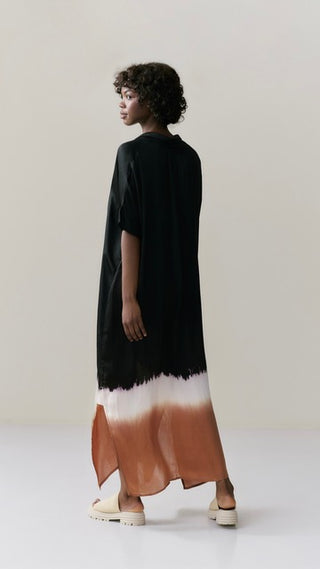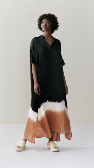 Jurk van het Belgische merk Nous. 100% viscose. Kleur: Blackish. Jurk met halflange mouwen en kraagje.