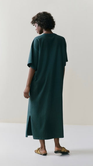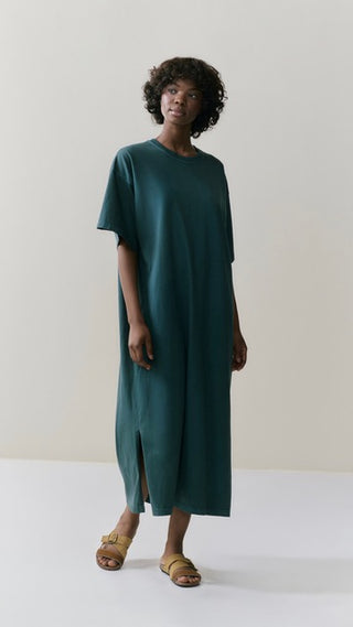 Jurk van het Belgische merk Nous. 100% katoen. Kleur: Overdye Jungle. Lange t-shirtjurk.