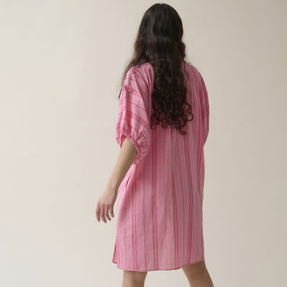 Nachtjurk van het Belgische merk Dorélit. 100% katoen. Kleur: Carmine Stripe. Jurk gemaakt van zacht katoen, heeft een ruime pasvorm en verlaagde schouders. Wil je het niet als slaapkleed, draag het over je bikini op weg naar het strand.