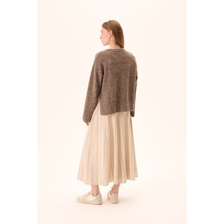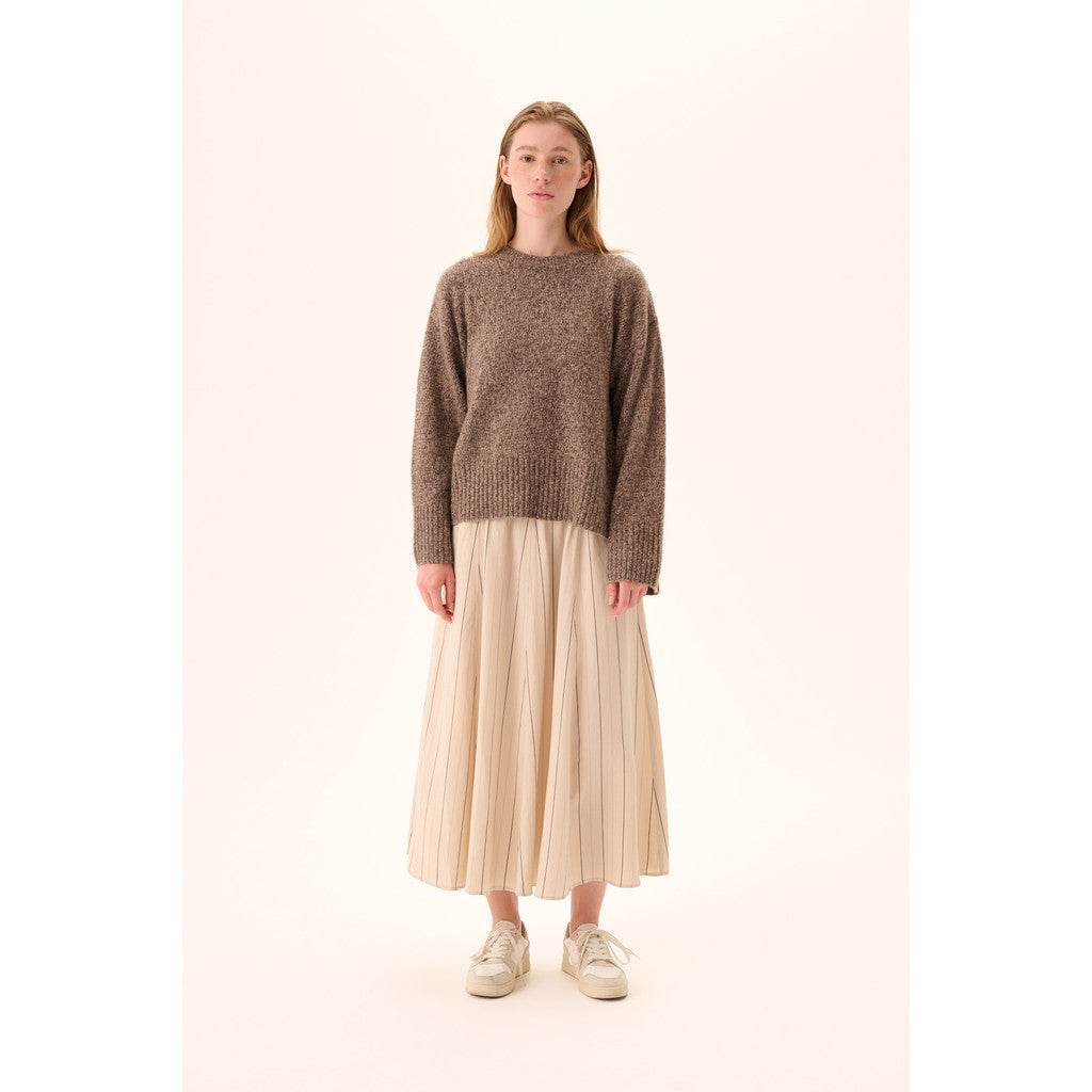 Rok van het Deense merk Rue de Tokyo. 97% tencel, 3% polyester. Kleur: Ecru Black Stripe. A-lijn rok met elastische taille en inseamzakken.