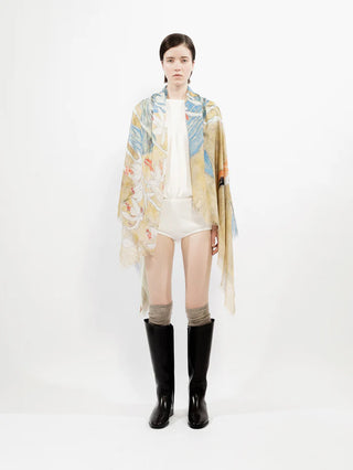 Sjaal van het Belgische merk Talking Walls. 80% modal, 20% zijde. Vierkante sjaal gemaakt van een zachte, vloeiende zijde/modal stof met een all-over, hoge-resolutie bedrukte, authentieke afbeelding.