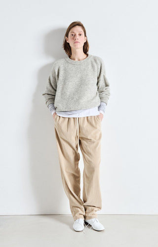 Sweater van het Franse merk American Vintage. Kleur: Gris claire. 34% alpaca, 34% wol, 29% polyamide, 3% elastaan. Trui met ronde hals.