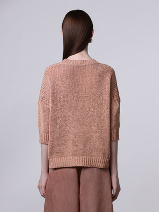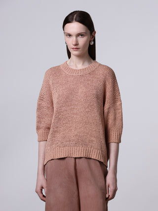 Trui van het Italiaanse merk Roberto Collina. 66% katoen, 34% polyamide. Kleur: Pink. Trui met hangende schouders en geribde boorden bij de zoom en manchetten.